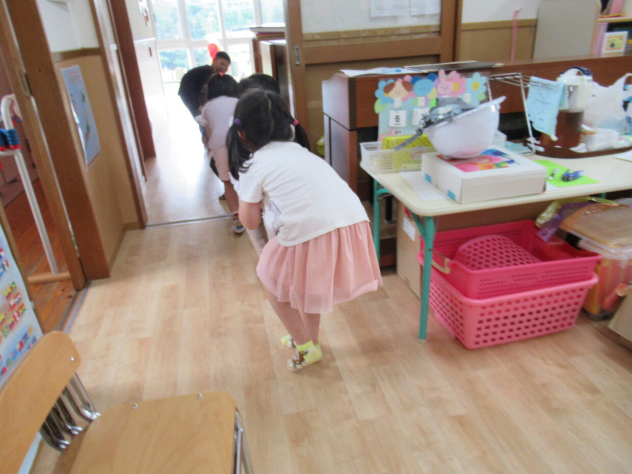 11月26日(水)10:00より、不審者侵入防止対策の避難訓練を実施しました。当園では毎月避難訓練を実施していますが、年2回(7月・11月)は不審者侵入防止対策としての避難訓練を実施しています。園長が不審者役となり園内への侵入を図り、職員がそれを阻止するという形で訓練を実施しました。その後各クラスで保育士が紙芝居等を使用してこどもたちにお話をして、防犯意識の向上に努めました。