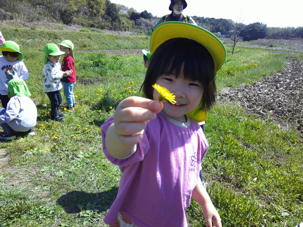 春のお散歩 保育日記 : 2026.04.09 今日は晴れたので、ばら組の園児たちがお散歩をしました。春の青空のもと、風に吹かれて、タンポポを摘んだりテントウムシを追いかけたりして楽しくお散歩をしました。お散歩から帰った後は、前庭で遊びました。 投稿をシェアする 最近の保育日記 春のお散歩 今日は晴れたので、ばら組の園児たちがお散歩をしました。春の青空のもと、風に吹かれて、タンポポを摘んだりテントウムシを追いかけたりして楽しくお散歩をしました。お散歩から帰った後は、前庭で遊びました。 2026.04.09 入園式を実施しました 4月4日(土)9:00より、令和8年度入園式を行いました。新入園児たちが保育園に早く馴染んで元気に楽しく生活してくれることを願っています。 2026.04.04 園庭あそび① 久しぶりに晴天となりましたので、年長・年中・年少クラスは園庭遊びをしました。みんなで元気にかけっこ、ぶらんこ、ボール遊び、砂場遊び、遊具遊びなどをしました。 2026.04.03 一覧を見る